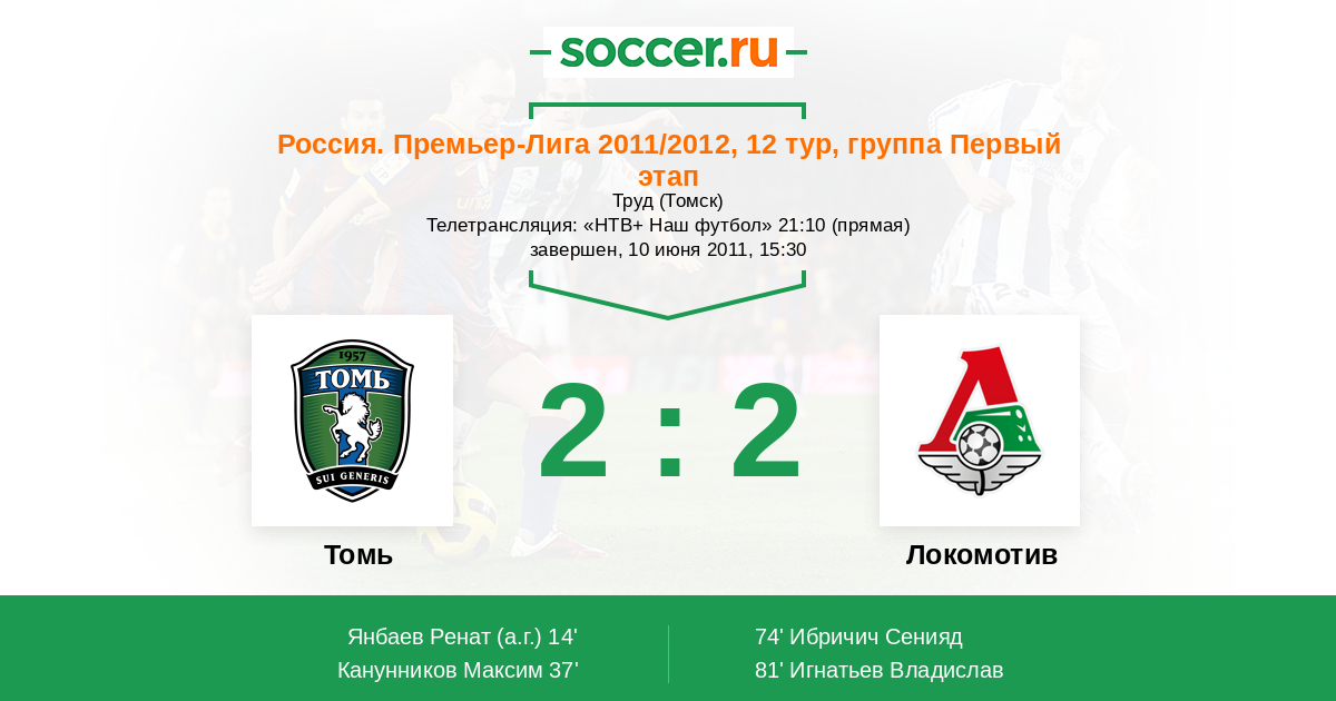 14' АвтоголЛоготип ЛокомотивЯнбаев Ренат (55, з) - 1:0 (А)