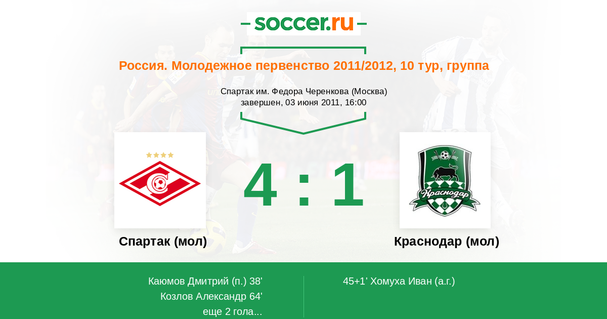 45+1' АвтоголЛоготип Спартак (мол)Хомуха Иван - 1:1 (А)
