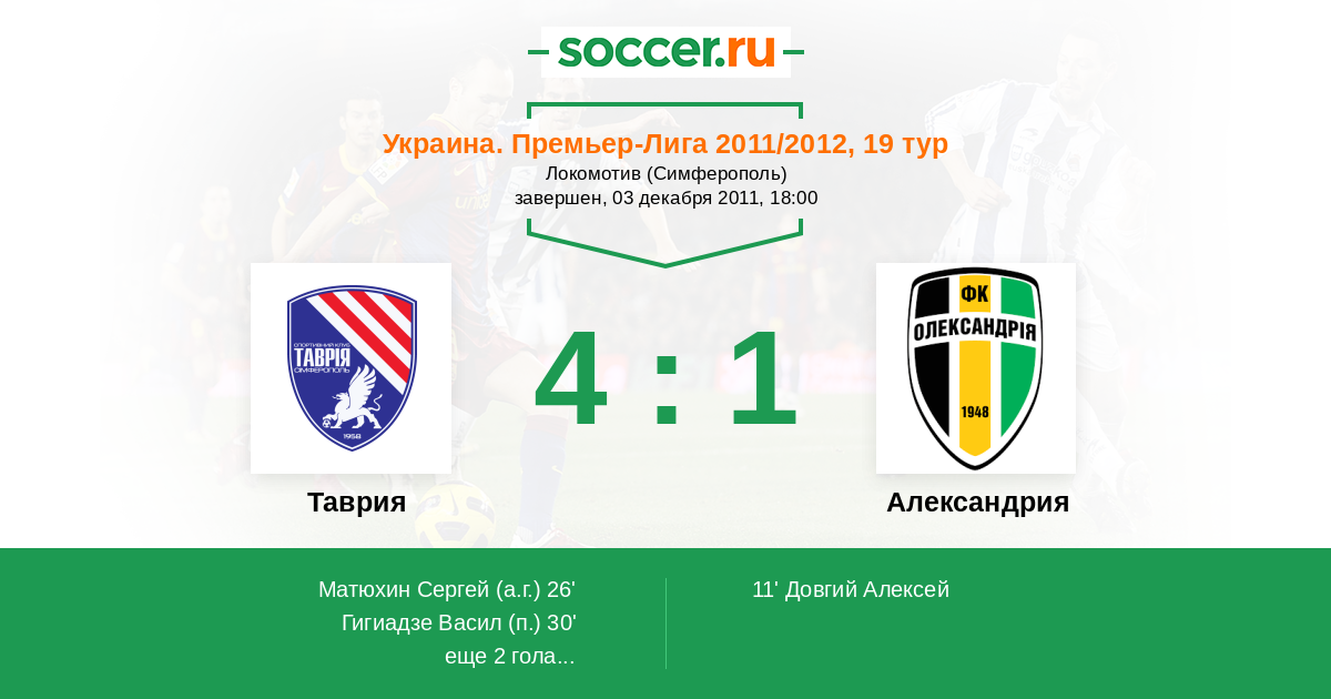 30' Гол с пенальтиЛоготип ТаврияГигиадзе Васил (20) - 2:1 (П)