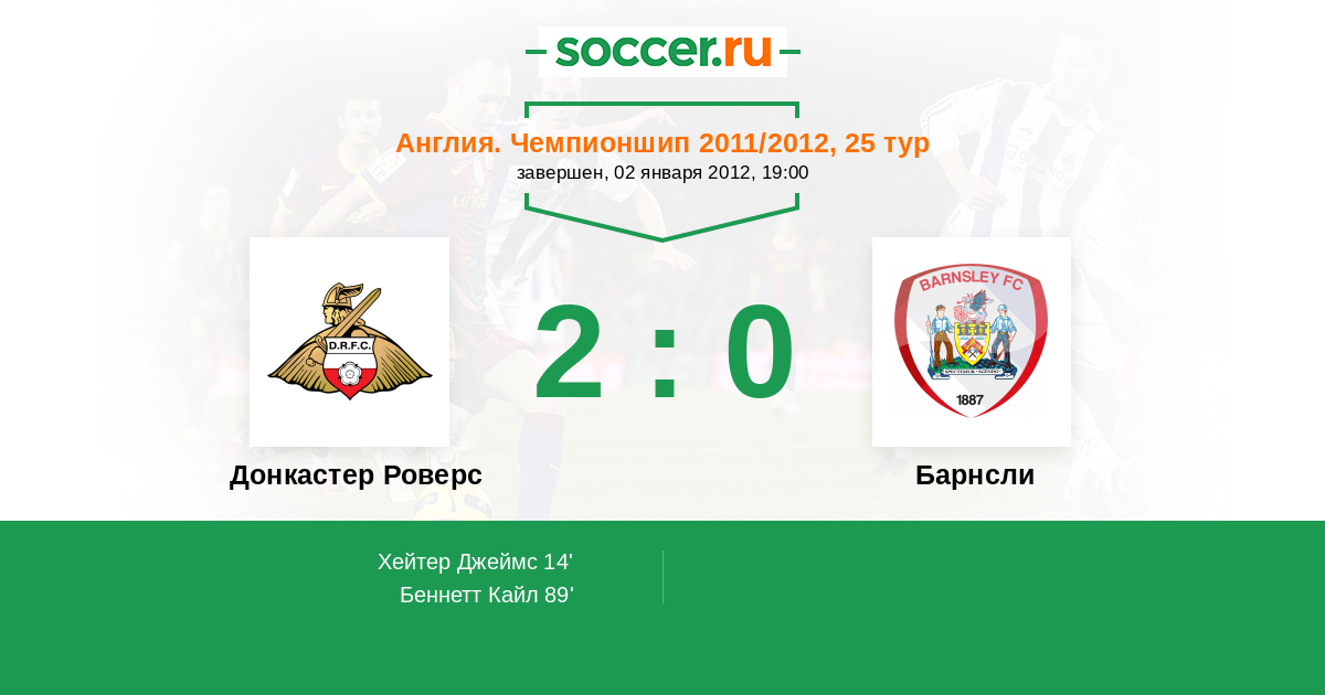 65' Желтая карточкаЛоготип Донкастер РоверсЛоквуд Адам (11) получил ж.к.