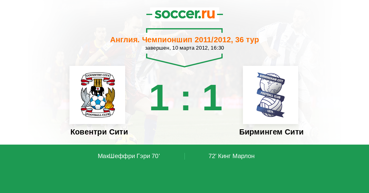 72' ГолЛоготип Бирмингем СитиКинг Марлон (9) - 1:1