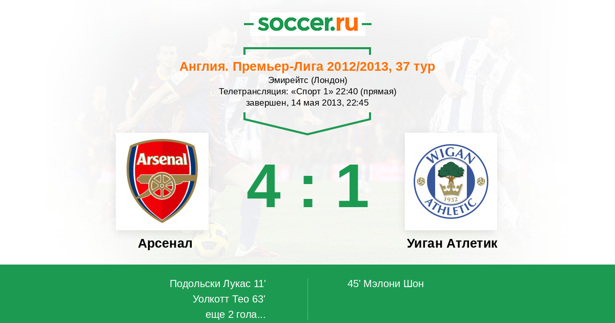 45' ГолЛоготип Уиган АтлетикМэлони Шон (10, н) - 1:1