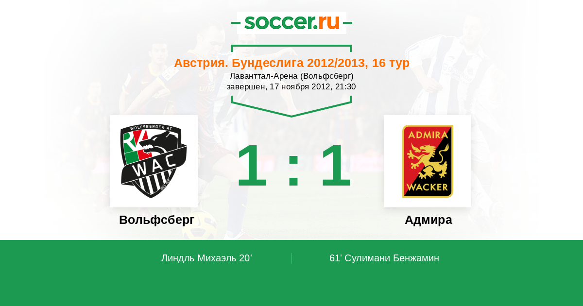 89' Желтая карточкаЛоготип ВольфсбергКерхе Мануэль (3) получил ж.к.