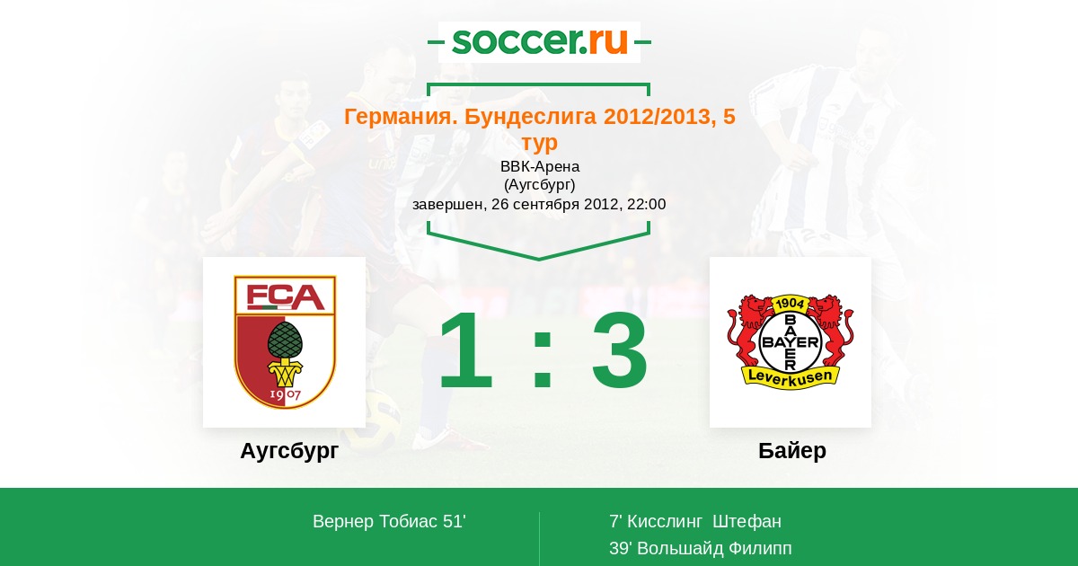53' Желтая карточкаЛоготип АугсбургБайер Даниэль (10) получил ж.к.