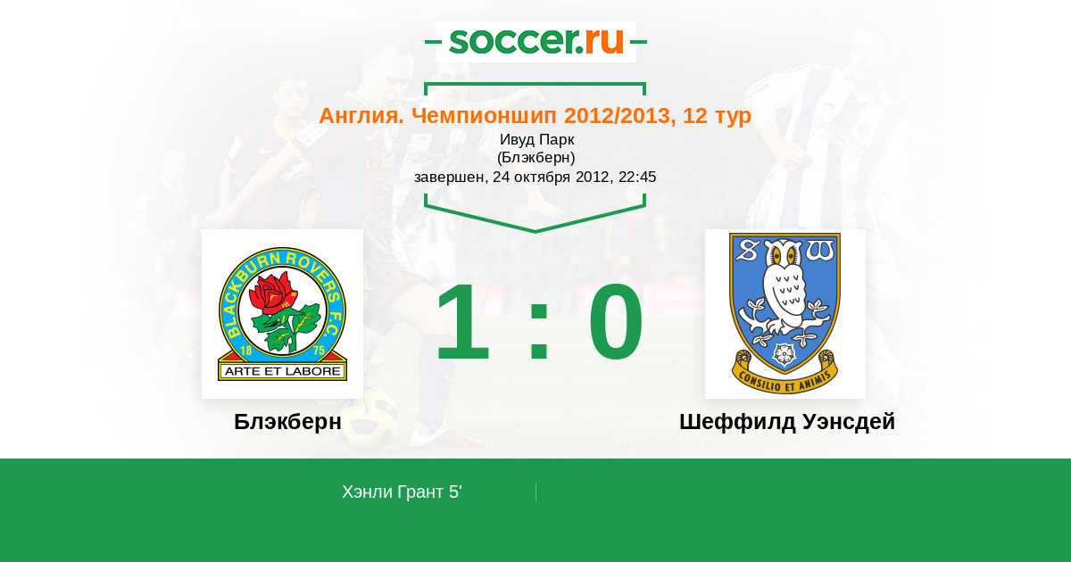 5' ГолЛоготип БлэкбернХэнли Грант (31) - 1:0