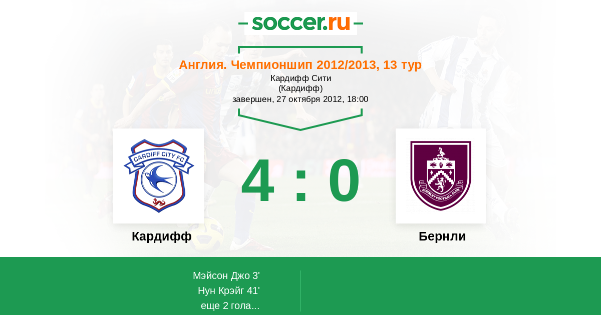 3' ГолЛоготип КардиффМэйсон Джо (20) - 1:0
