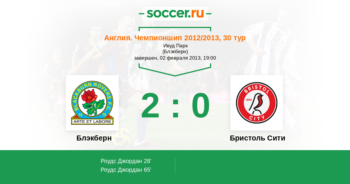 28' ГолЛоготип БлэкбернРоудс Джордан (11) - 1:0