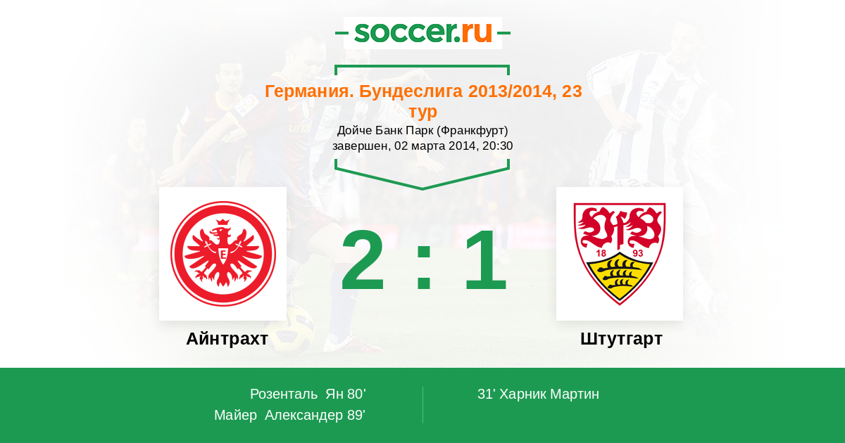 76' Желтая карточкаЛоготип ШтутгартНидермайер Георг (6) получил ж.к.