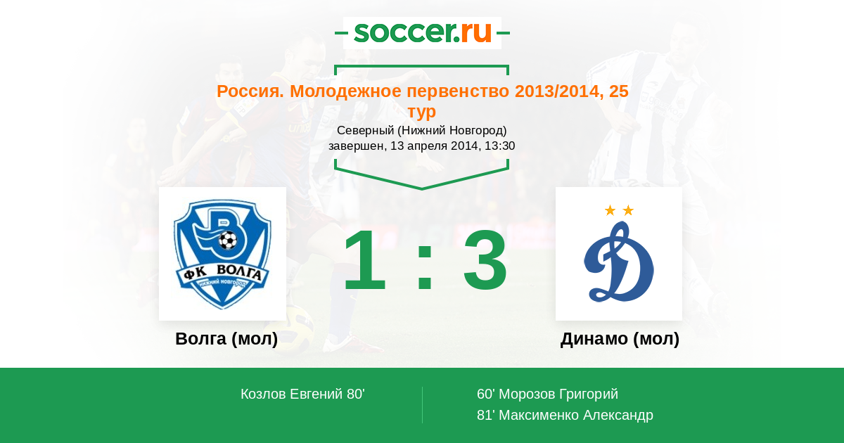 73' ЗаменаЛоготип Волга (мол)Гаранжа Сергей (99) уходит с поля