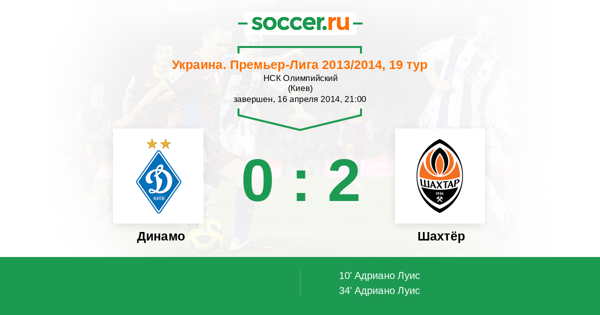 10' ГолЛоготип ШахтёрАдриано Луис (9, п) (Логотип ШахтёрТайсон (28, н)) - 0:1