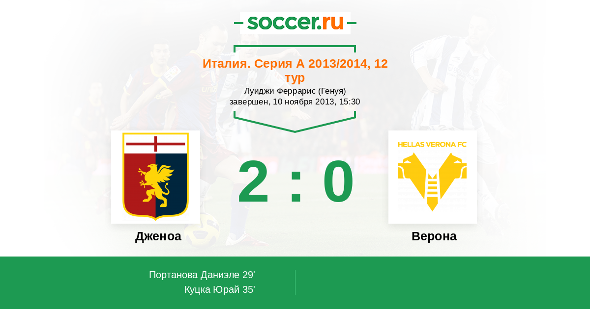 35' ГолЛоготип ДженоаКуцка Юрай (33) (Логотип ДженоаМатузалем (27)) - 2:0