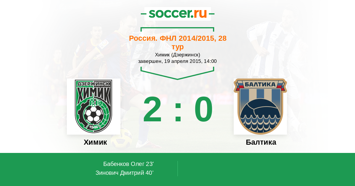 23' ГолЛоготип ХимикБабенков Олег (28) - 1:0