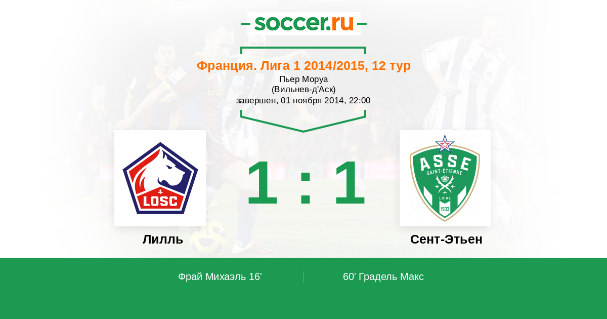82' Желтая карточкаЛоготип ЛилльФрай Михаэль (11) получил ж.к.