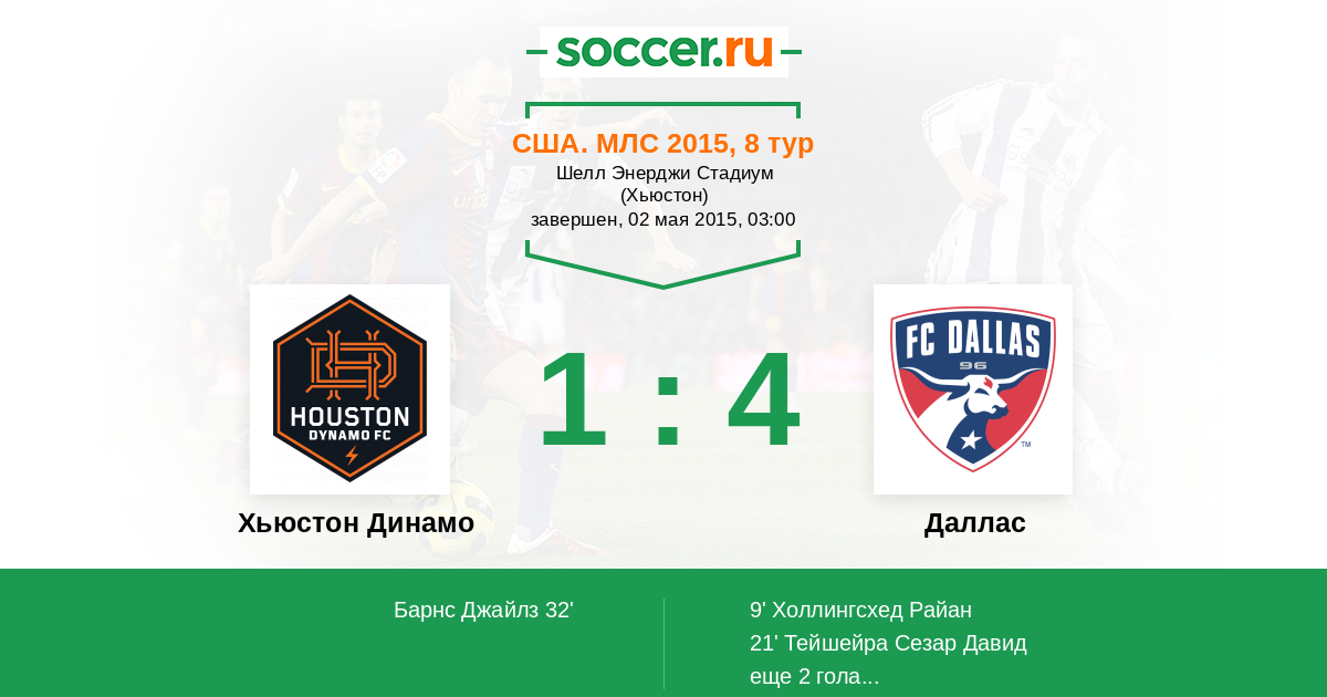 32' ГолЛоготип Хьюстон ДинамоБарнс Джайлз (10) - 1:2