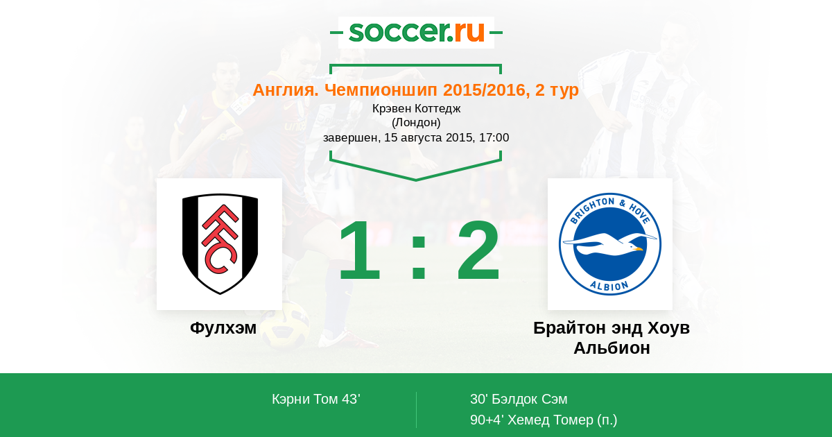 30' ГолЛоготип Брайтон энд Хоув АльбионБэлдок Сэм (9) (Логотип Брайтон энд Хоув АльбионБруно (2)) - 0:1