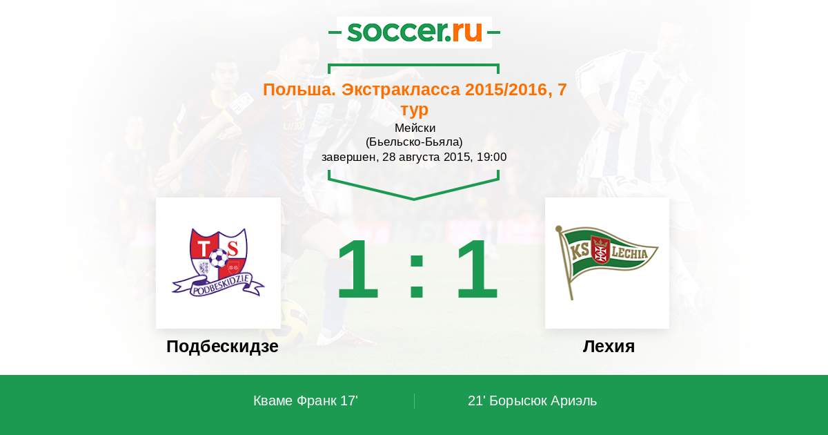 17' ГолЛоготип ПодбескидзеКваме Франк (5) - 1:0