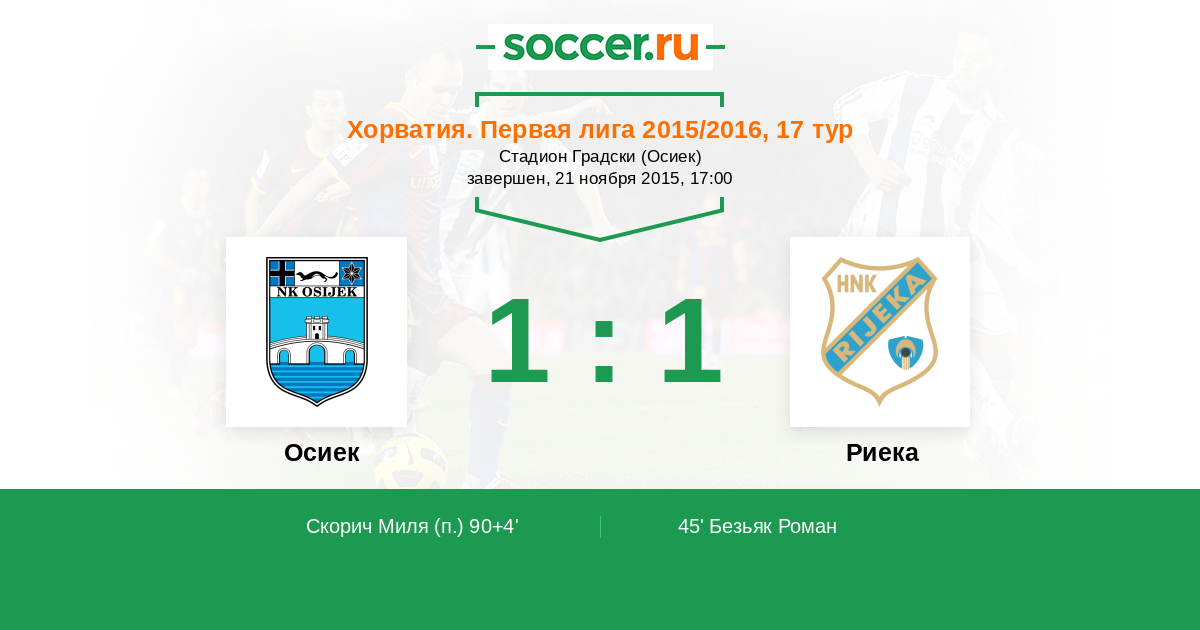 90+4' Гол с пенальтиЛоготип ОсиекСкорич Миля - 1:1 (П)
