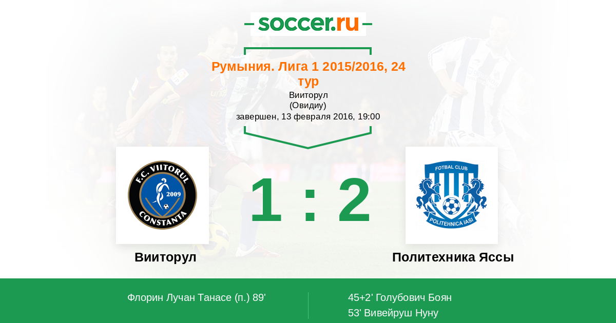 45+2' ГолЛоготип Политехника ЯссыГолубович Боян (14) - 0:1