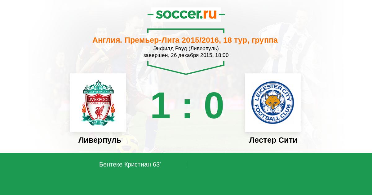 Всем привет! Английская Премьер-Лига уже спешит снять рождественское похмелье! Главное, чтобы его не было у самих футболистов. Хотя у игроков "Лестера" наверняка есть. Как минимум - опьянение от успеха. "Ливерпулю" сегодня жизненно важно соперника отрезвить. Потому что если Юрген Клопп хочет попасть в Лигу чемпионов в первом же сезоне, то надо кого-то из четвёрки вытеснять. "Арсенал" и "Манчестер Сити" оттуда выбить нереально, а вот сенсационный и никак не успокаивающийся "Лестер Сити" - вполне можно попытаться. Но без успехов в очном противостоянии о подобных стремлениях можно забыть. Как бы то ни было, вскоре начнётся главный матч уик-энда. Игра, на которую лучше не делать ставки, но оторвать взгляд от которой точно будет невозможно. Вместе с вами не опускать глаза будет Николай Самофалов.