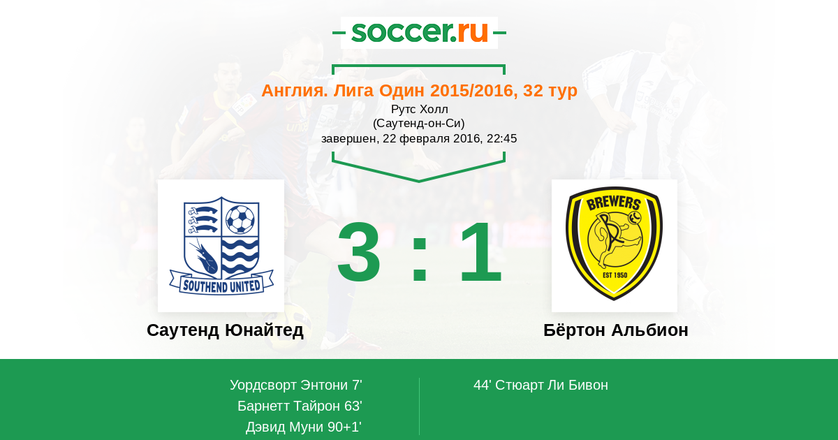Саутенд Юнайтед - Бёртон Альбион: обзор матча 22 февраля 2016