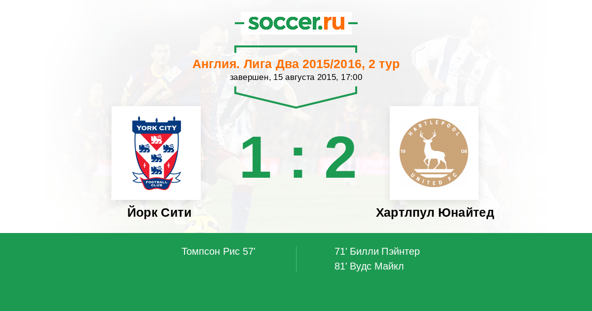 Йорк Сити - Хартлпул Юнайтед: обзор матча 15 августа 2015