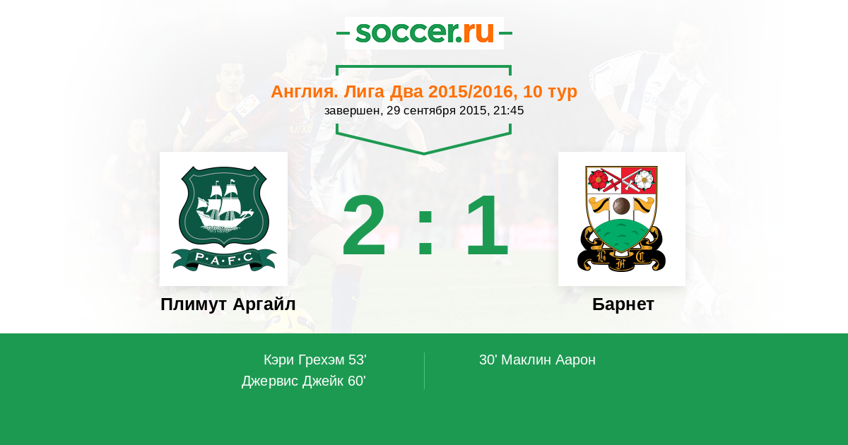 Плимут Аргайл - Барнет: обзор матча 29 сентября 2015