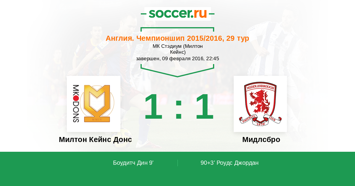 Милтон Кейнс Донс - Мидлсбро: обзор матча 9 февраля 2016