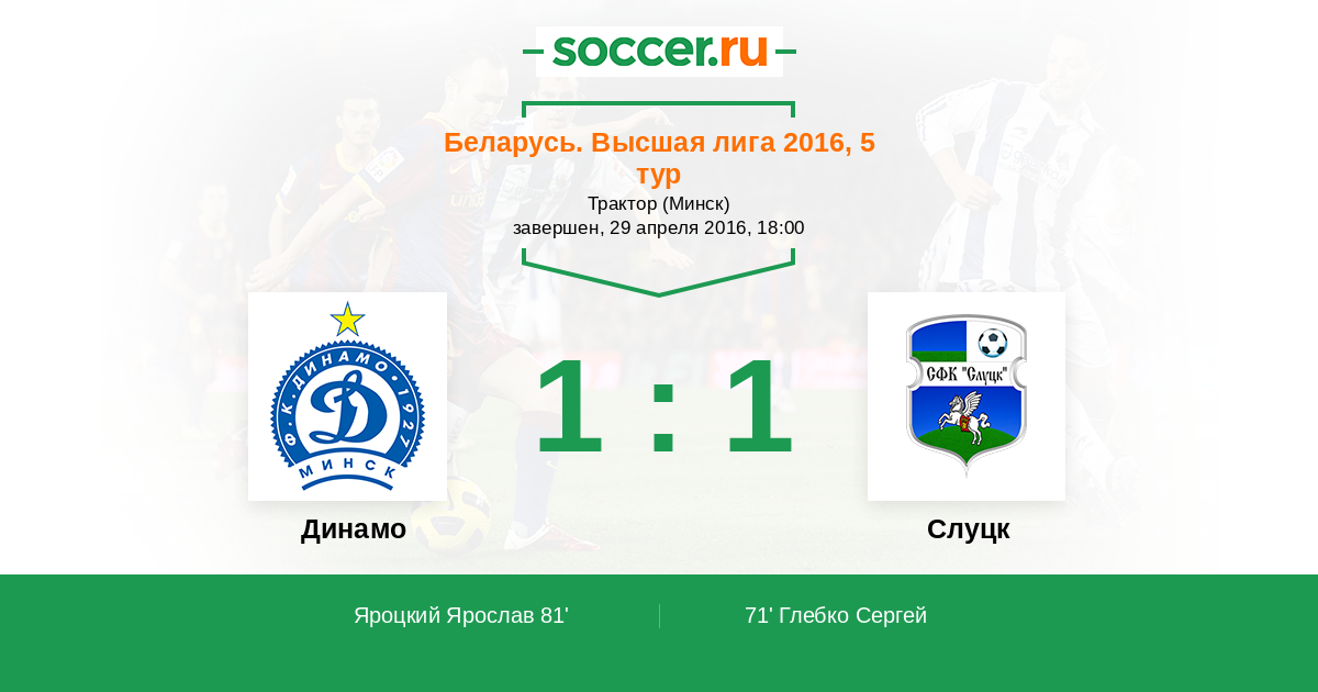 Динамо - Слуцк: обзор матча 29 апреля 2016