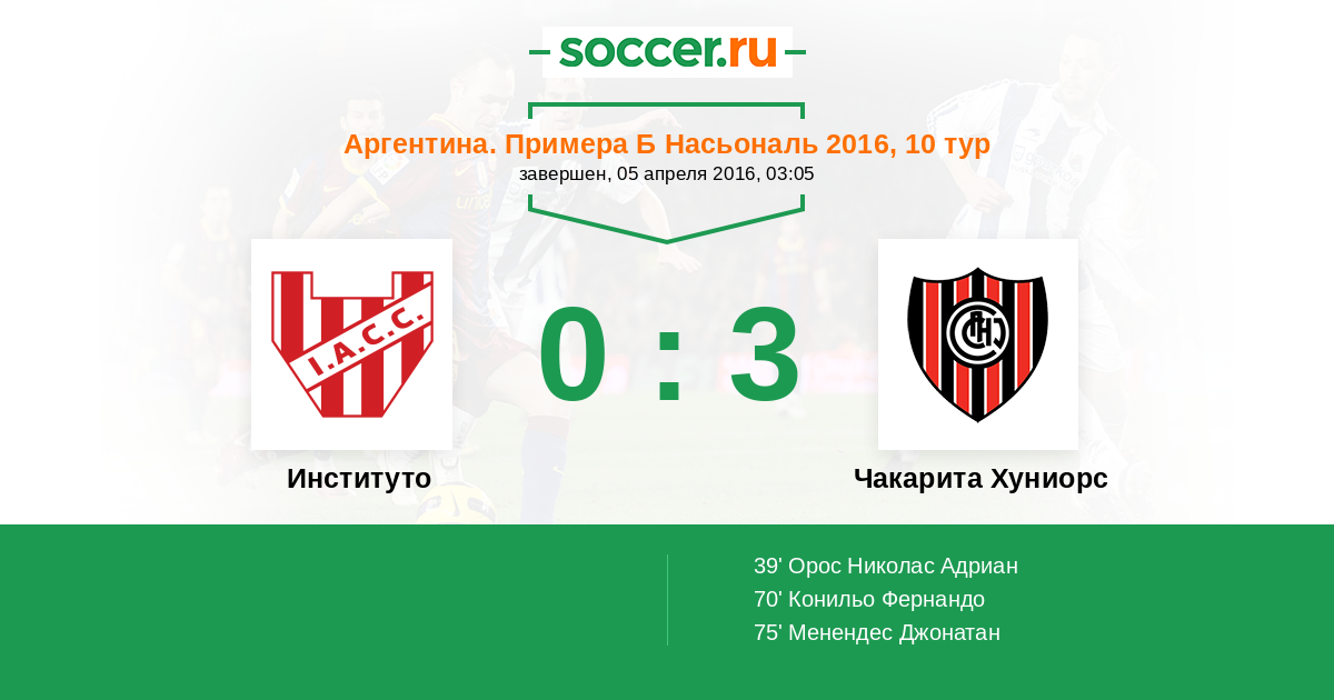 Институто - Чакарита Хуниорс: обзор матча 5 апреля 2016