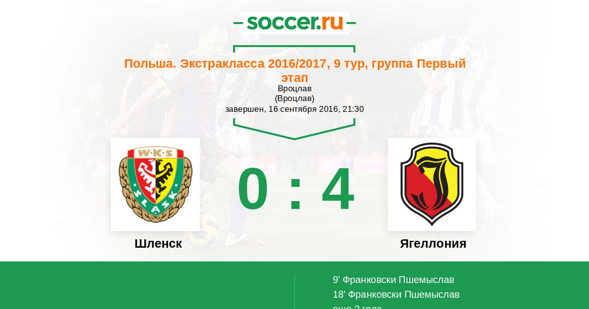 Шленск - Ягеллония: обзор матча 16 сентября 2016