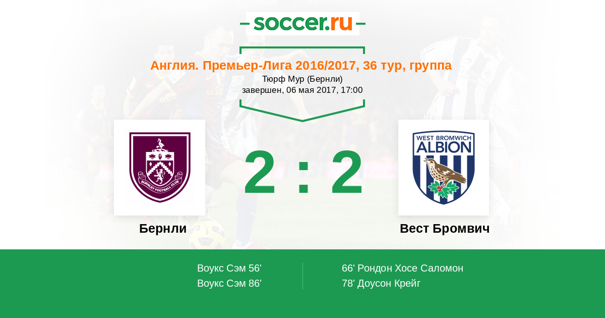 Бернли - Вест Бромвич: обзор матча 6 мая 2017