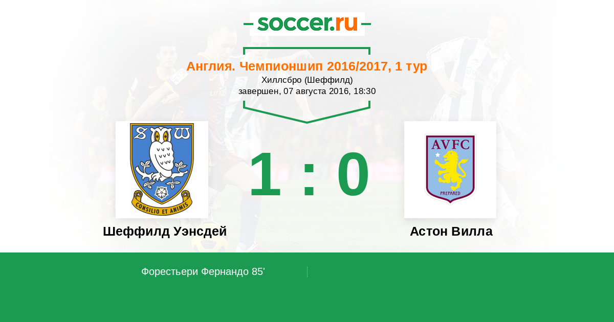 Шеффилд Уэнсдей - Астон Вилла: обзор матча 7 августа 2016