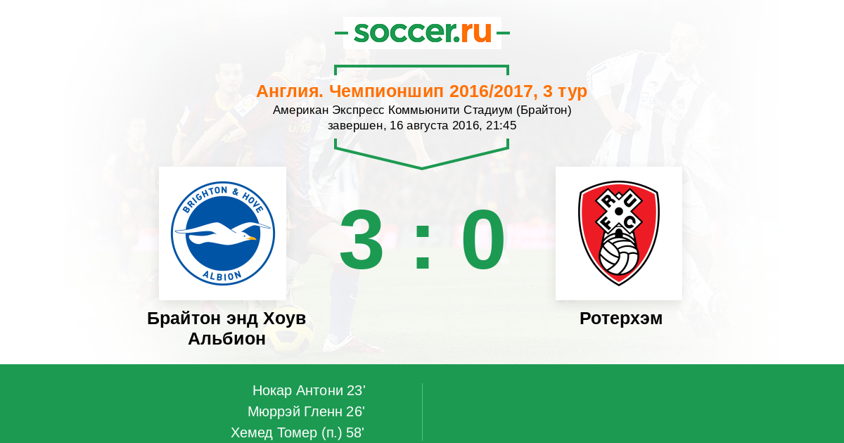 Брайтон энд Хоув Альбион - Ротерхэм: обзор матча 16 августа 2016