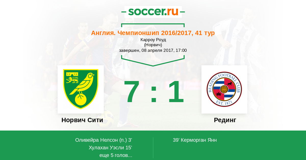 Норвич Сити - Рединг: обзор матча 8 апреля 2017