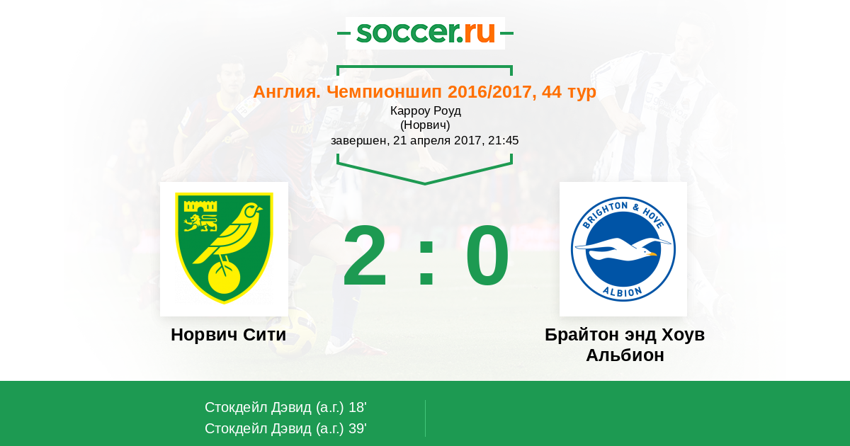 Норвич Сити - Брайтон энд Хоув Альбион: обзор матча 21 апреля 2017