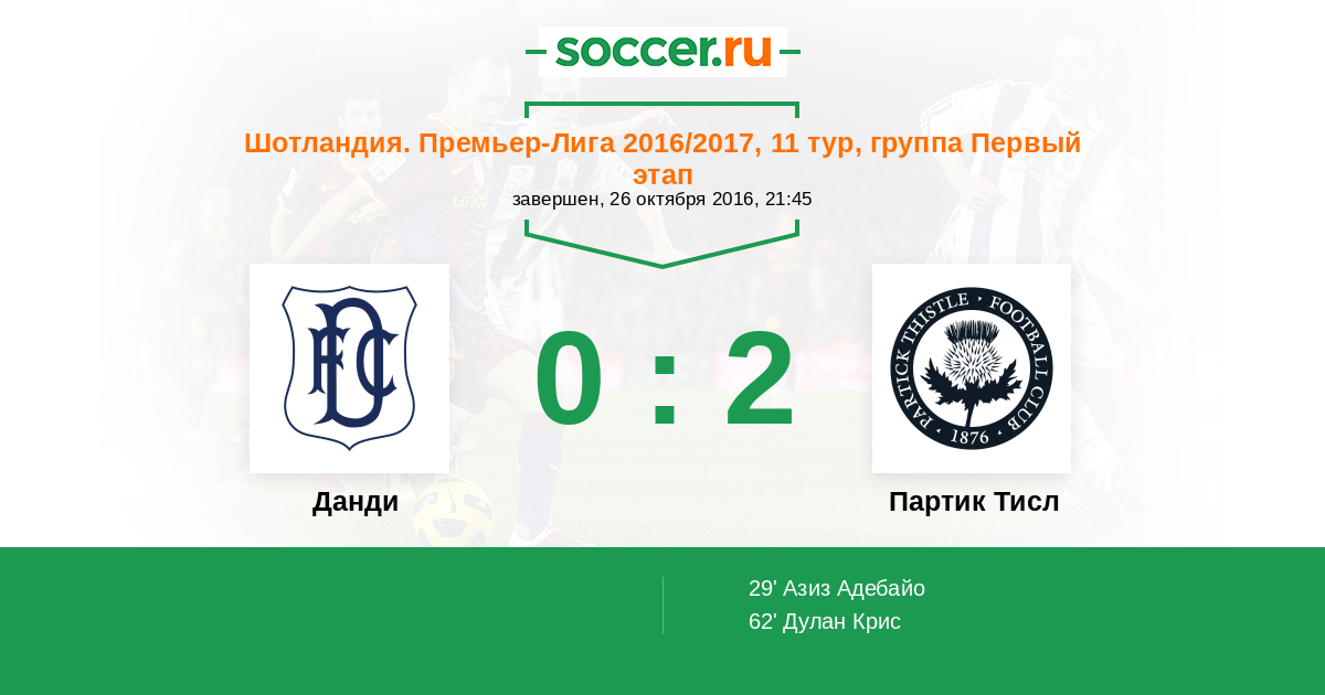Данди | 33 | 8 | 6 | 19 | 5 | 33:53 | 30 |