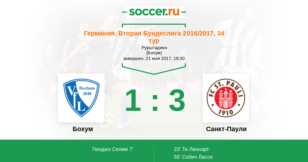 Бохум - Санкт-Паули: обзор матча 21 мая 2017