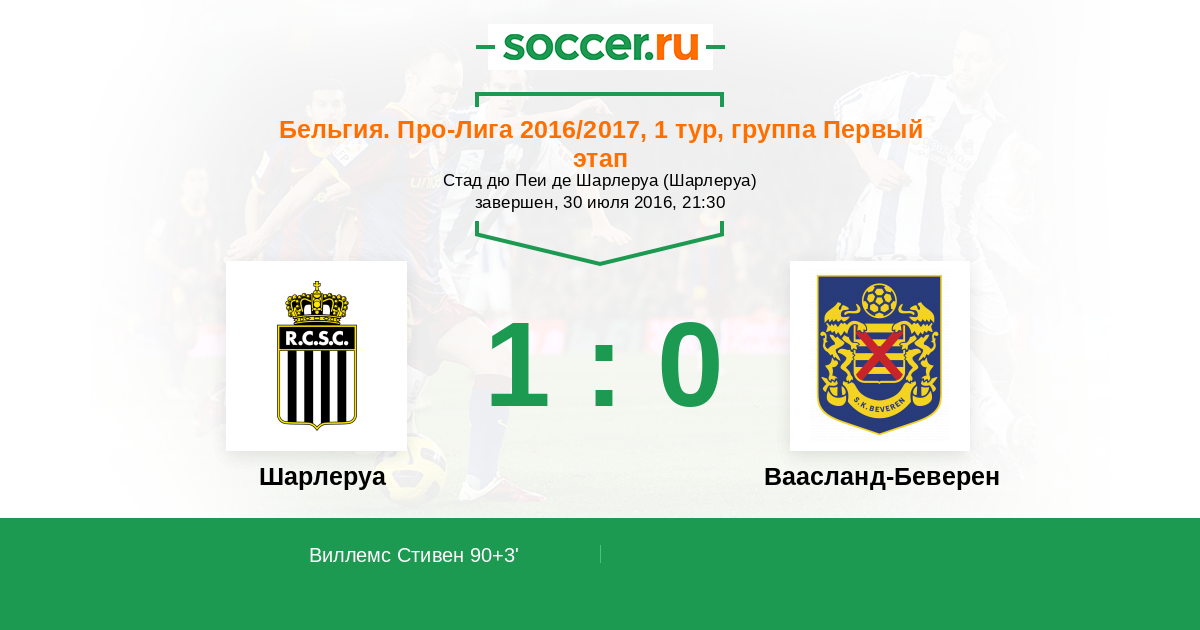 Шарлеруа - Ваасланд-Беверен: обзор матча 30 июля 2016
