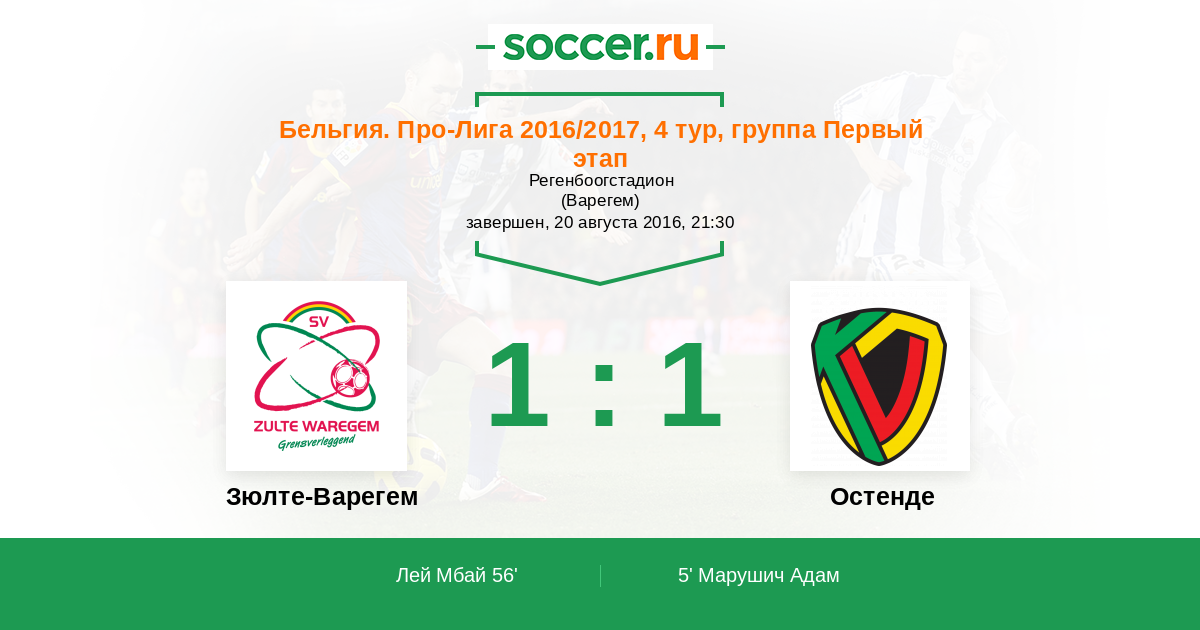 Зюлте-Варегем - Остенде: обзор матча 20 августа 2016