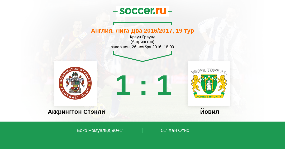 Аккрингтон Стэнли - Йовил: обзор матча 26 ноября 2016