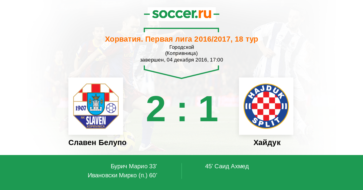 Славен Белупо - Хайдук: обзор матча 4 декабря 2016