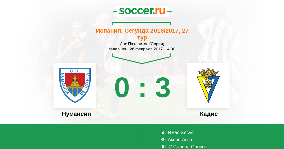 Нумансия - Кадис: обзор матча 26 февраля 2017