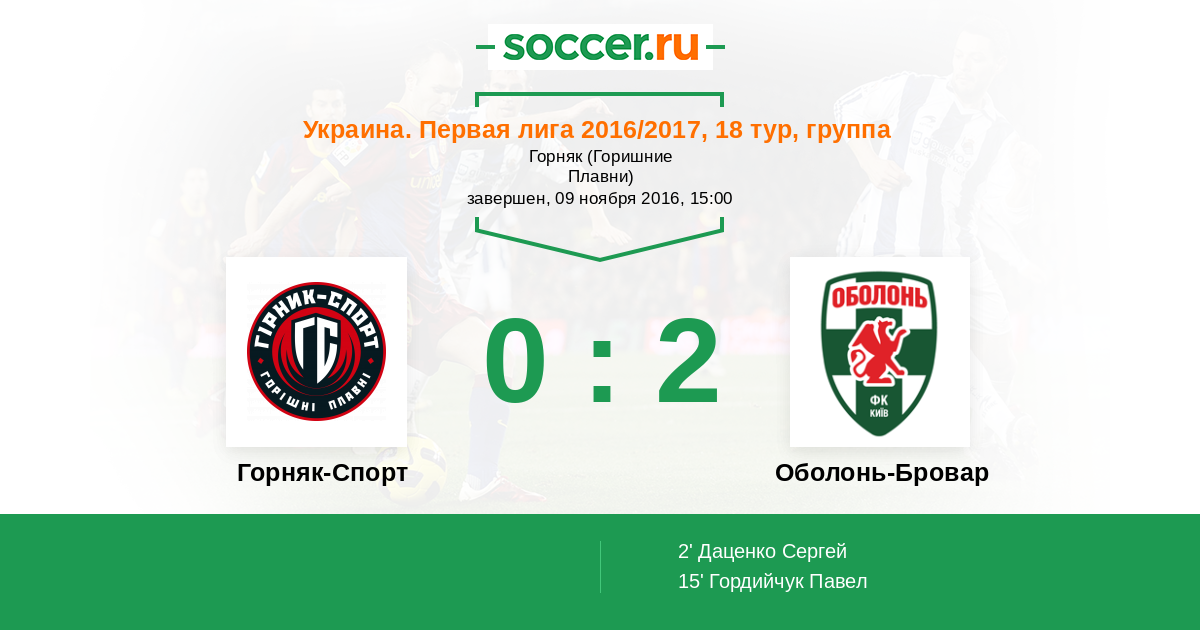 Горняк-Спорт - Оболонь-Бровар: обзор матча 9 ноября 2016