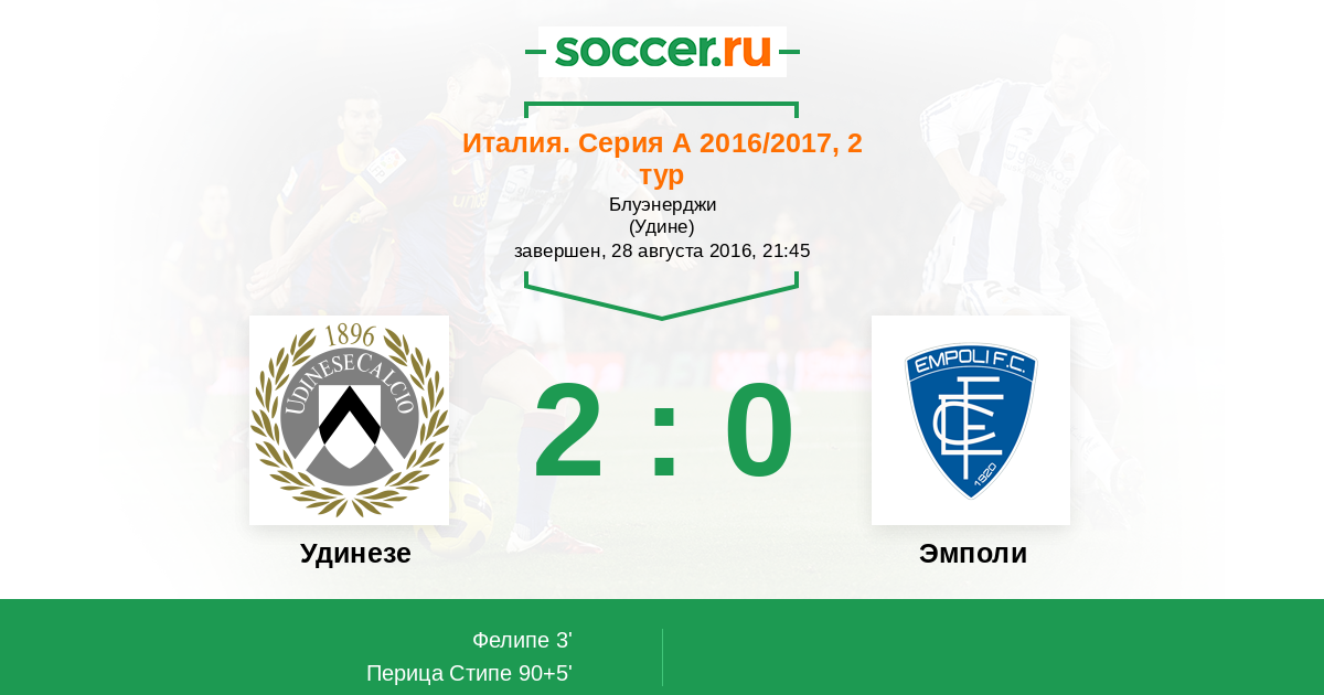 Удинезе - Эмполи: обзор матча 28 августа 2016
