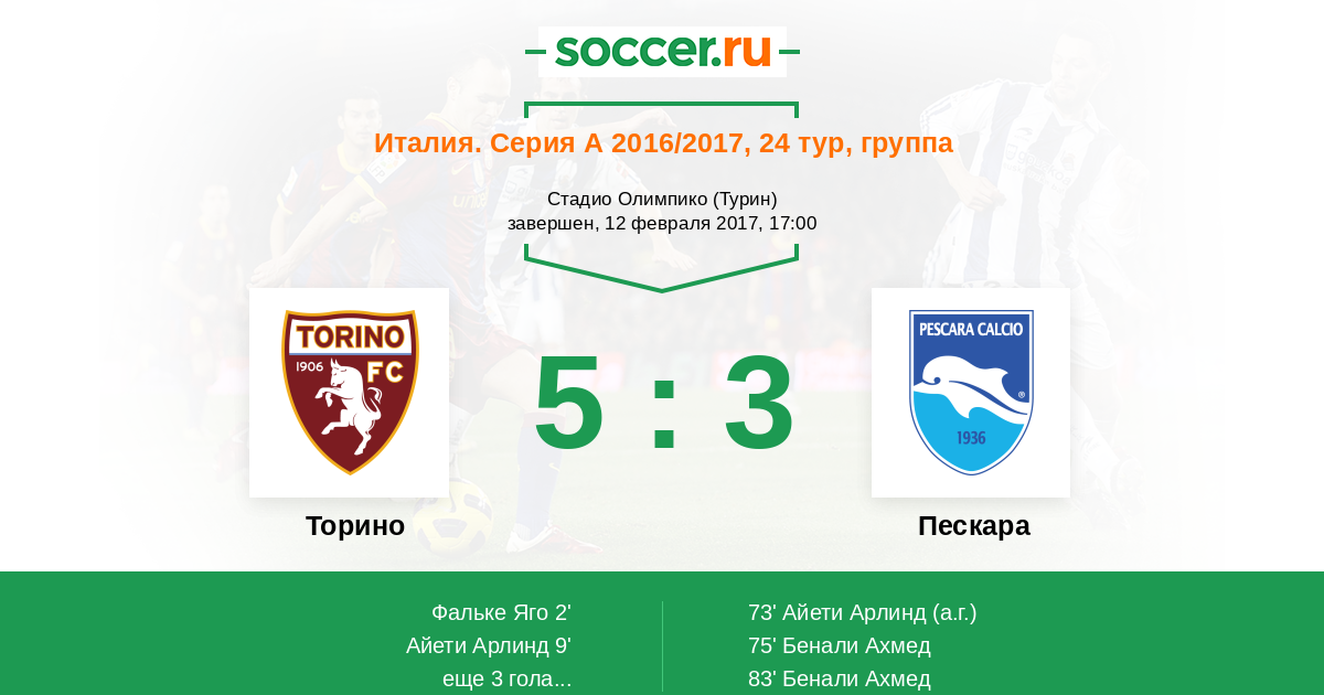 Торино - Пескара: обзор матча 12 февраля 2017