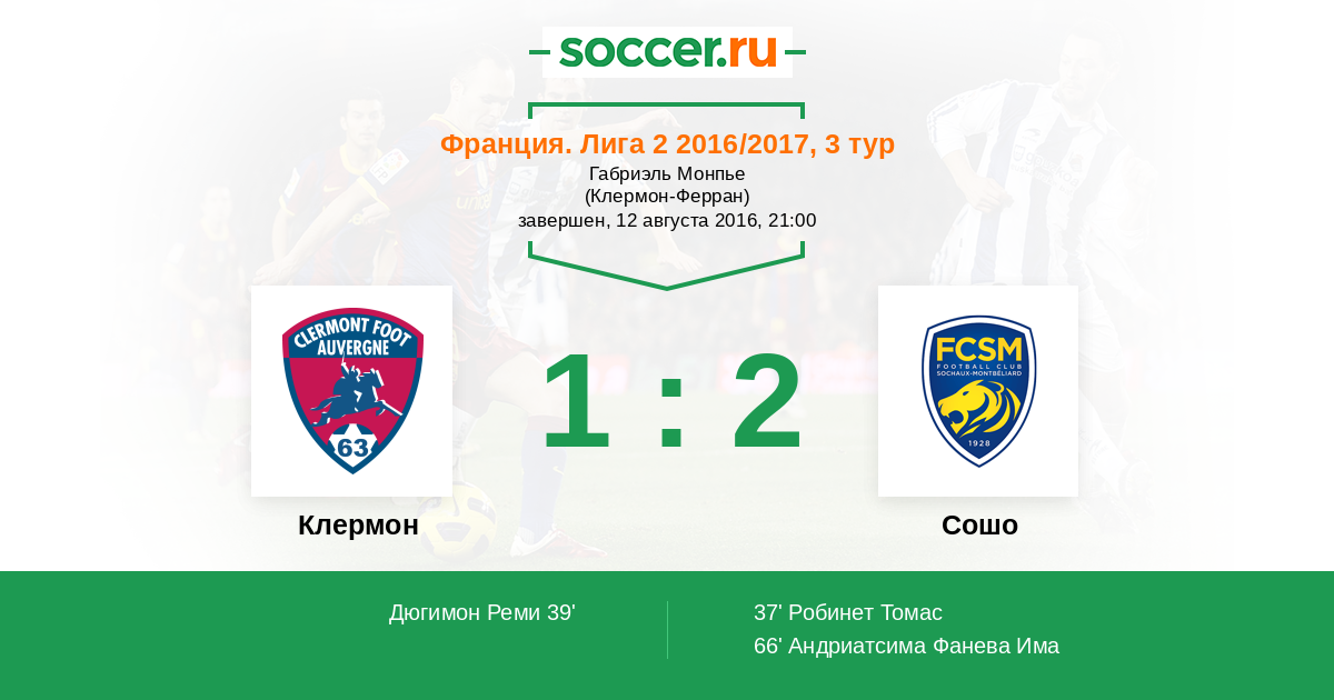 Клермон - Сошо: обзор матча 12 августа 2016