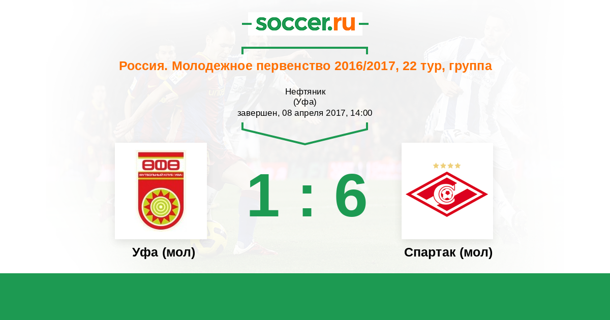 Уфа (мол) - Спартак (мол): обзор матча 8 апреля 2017