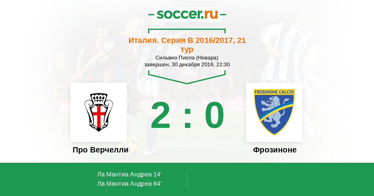 Про Верчелли - Фрозиноне: обзор матча 30 декабря 2016