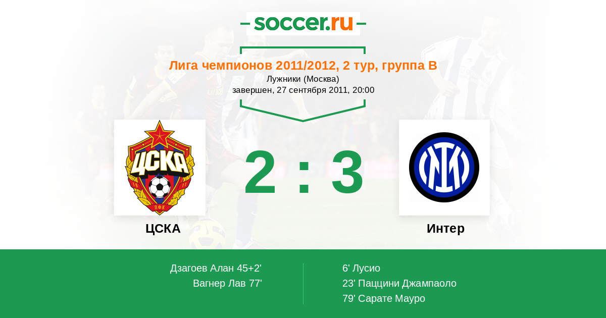 ЦСКА - Интер: обзор матча 27 сентября 2011