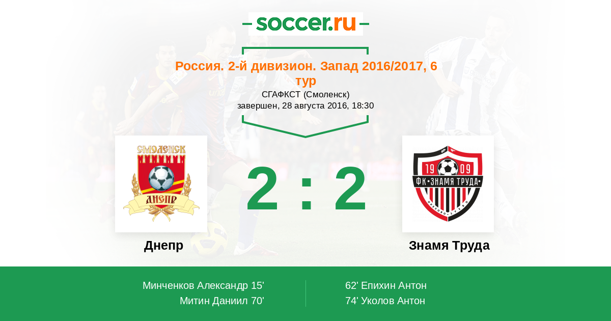 ЦРФСО Смоленск - Знамя Труда: обзор матча 28 августа 2016